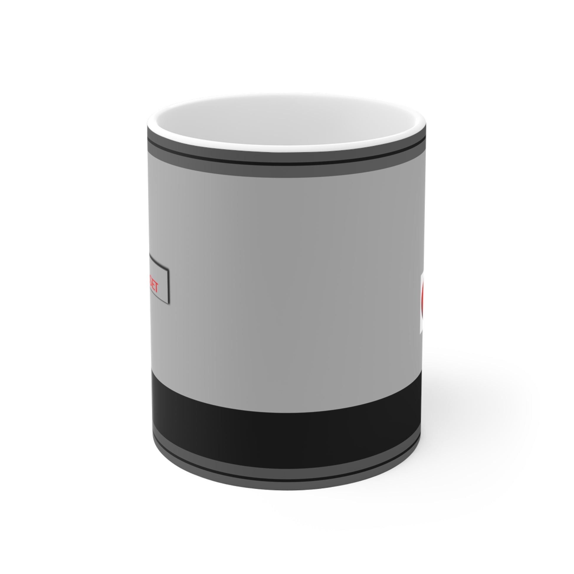 A sturdy ceramic mug that channels retro tech vibes with calm, core simplicity. Matte gray panels wrap the mug like a console faceplate, punctuated by tiny red “POWER” and “RESET” labels and a bold black base stripe. It feels like a quiet nod to old school machines — the kind of cup you reach for when you want focus: morning code sprints, late-night troubleshooting, or slow weekend projects at the workbench. The wide C-handle sits comfortably in hand, and the durable white ceramic keeps colors crisp while resisting scratches. This mug settles into routines: a steady presence on cluttered desks, a familiar companion beside notebooks and soldering stations, and a small, clever detail that speaks to anyone who tinkers, builds, or loves vintage tech aesthetics.